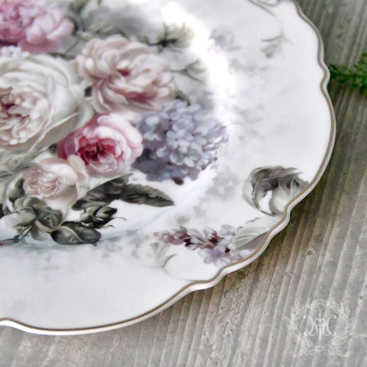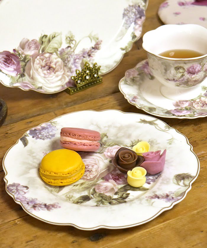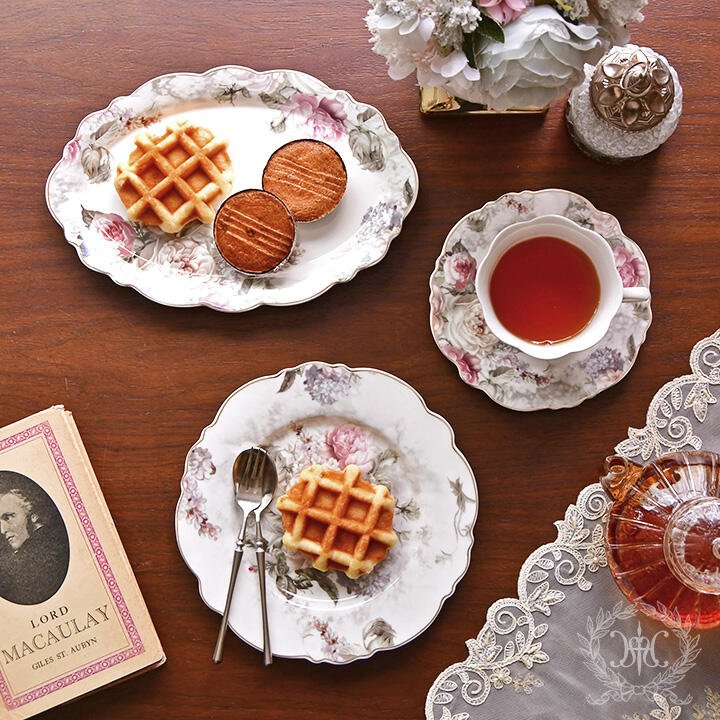 シンプルな無地のプレートにクッキーやケーキをのせてティータイムを楽しむのもいいですが、ローズブーケラウンドプレートならいつものティータイムがより華やかに♪
