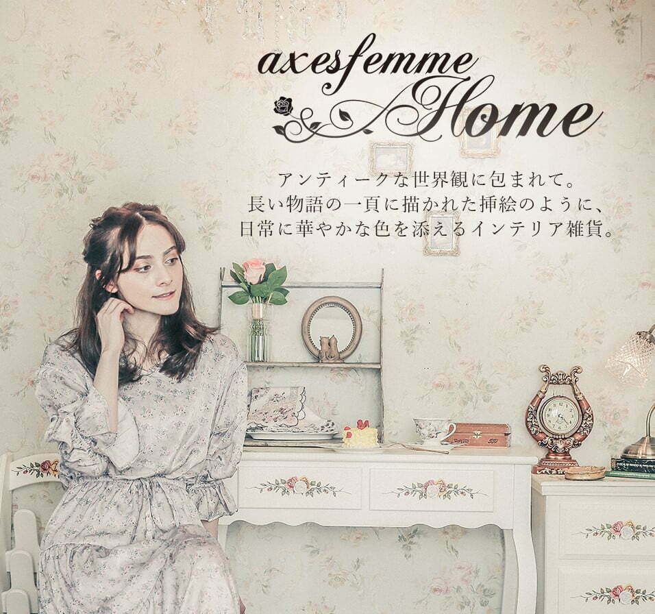axes femmeは女性らしいヨーロピアンヴィンテージを展開するアパレルブランドで、フリルやレース、ギャザーなど、クラシカルでエレガントな要素をデザインに取り込んだウェアを提案しています。