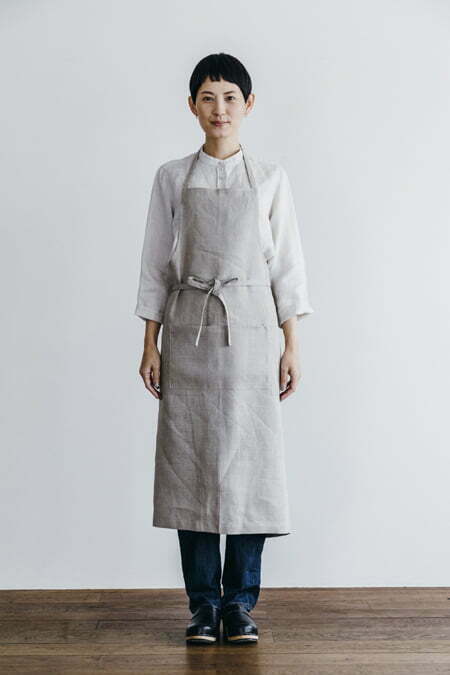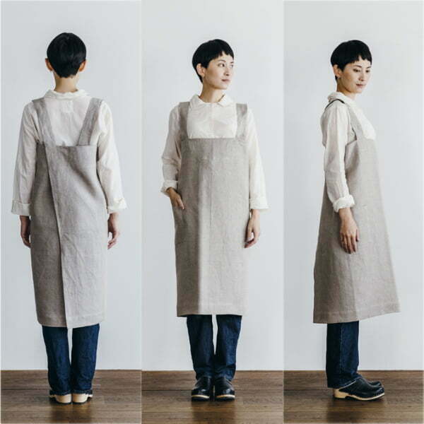 fog linen work リネンスクエアクロスエプロンはおうちの中で部屋着としても◎