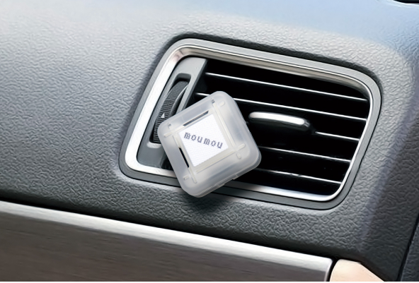 その状態でエアコンを稼働させれば、あっという間に優しい香りが車内に広がります。 また、車だけでなく室内に設置してあるサーキュレーターや扇風機などにも差し込めるため、いつでもどこでもmoumouならではの上質な香りを楽しめます。