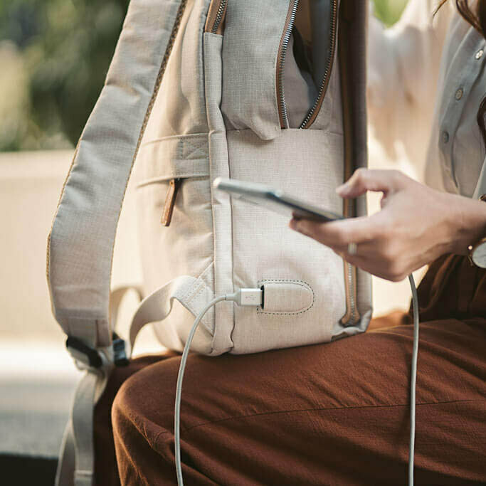 USB充電ポートを内蔵しており、お出かけ中に電池切れの心配がありません。